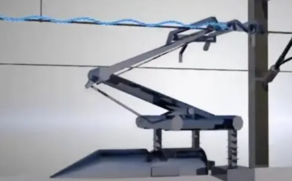 高铁能够通过一个叫受电弓的结构,跟高压线连接取电。受电弓将高压电取到车内,经过降压处理,用来驱动高铁。