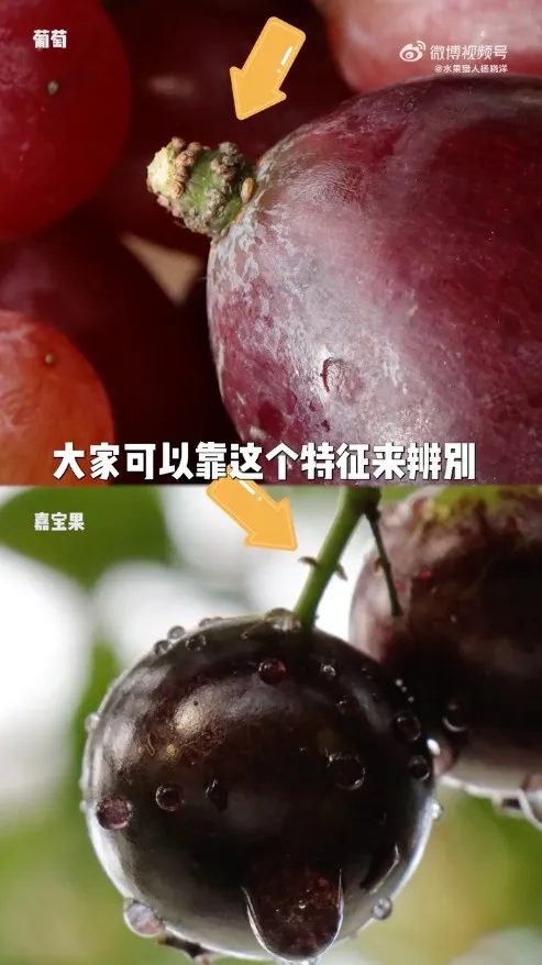 从嘉宝果的别名“树葡萄”上能看出来,人们常常会把它和葡萄搞混。但其实嘉宝果和葡萄在分类学上关系薄弱,属于蔷薇类植物下的不同目。嘉宝果反而和同样属于桃金娘科的番石榴和莲雾比较接近。仔细观察葡萄和嘉宝果的果柄和果肉,就能将它们区别开来:葡萄的果柄较粗,上面布满麻点,果肉呈现透明状绿色;而真正的嘉宝果的果柄较细,里面切开呈白色。