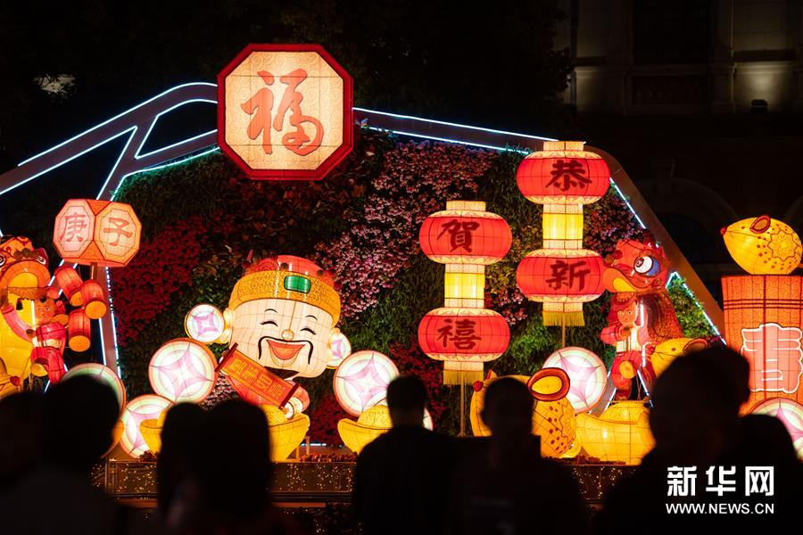 1月18日在澳门议事亭前地拍摄的春节灯饰。为迎接新春佳节,澳门市政署以“金鼠迎春贺新禧”为主题,在各街区78个地点布置传统花灯和特色金鼠造型灯饰,让市民和游客感受喜庆祥和的年味,开启新年新气象。新华社记者 张金加 摄