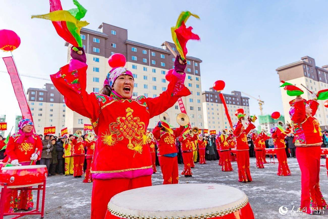 1月19日,张北县易地扶贫搬迁贫困户在义合美社区内庆祝喜迁新居。义合美社区是由中建二局一公司承建的张北县易地扶贫搬迁万人社区项目。去年10月至今,已先后有1300余户居民陆续迁入新居。作为河北省张家口市张北县“空心村”治理安置区之一,这里将建设安置房45.35万平方米,承载着全县12个乡镇、80个行政村、138个自然村、6226户搬迁户的安置任务,是全县 “空心村”治理规模最大的安置区。人民网记者 史家民 摄