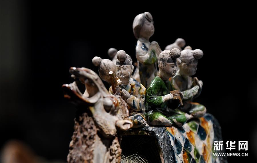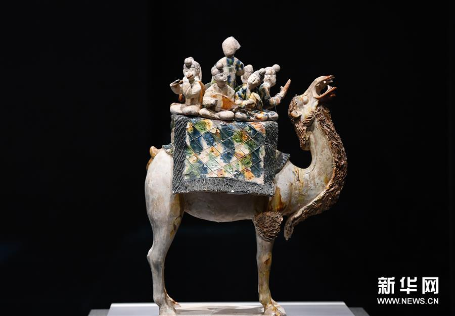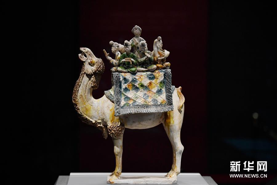 这是在陕西历史博物馆展出的唐三彩骆驼载乐俑(3月25日摄)。 新华社记者 李一博 摄