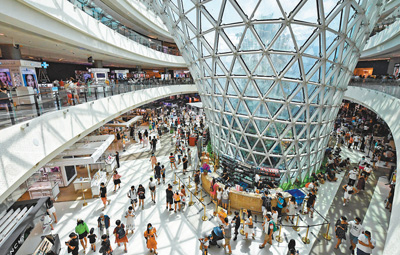 10月5日,游客在海南三亚国际免税城购物。新华社记者 郭程摄
